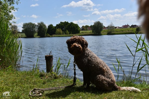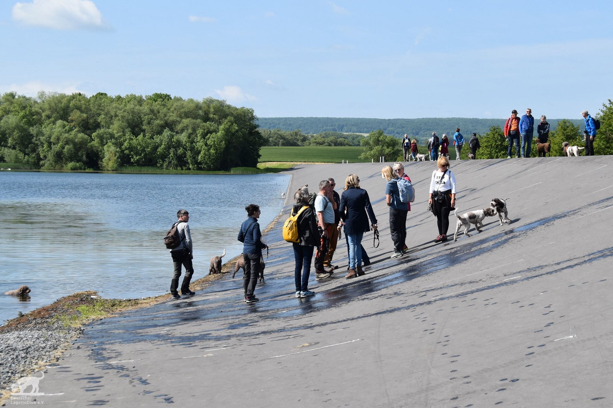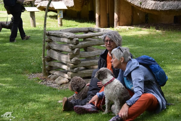 Danach erkundeten wir das Freilichtmuseum „Opfermoor“, eine nachgebildete germanische Siedlung sowie deren Götterkult. Die Geschichte dieses Ortes reicht bis ins Jahr 600 v.Chr. zurück. Für unsere Hunde gab es anschließend noch ausreichend Badestellen, um das „Opfermoor“ und seinen Göttern selbst zu huldigen. Der Rückweg zur Talsperre wurde wieder von schönstem Sonnenschein begleitet und die Hunde durften noch einmal das Wasser genießen.