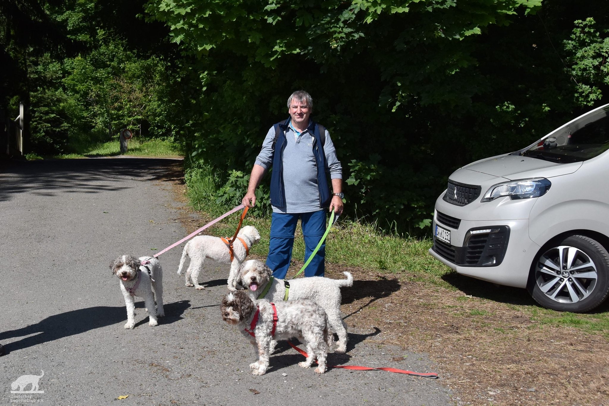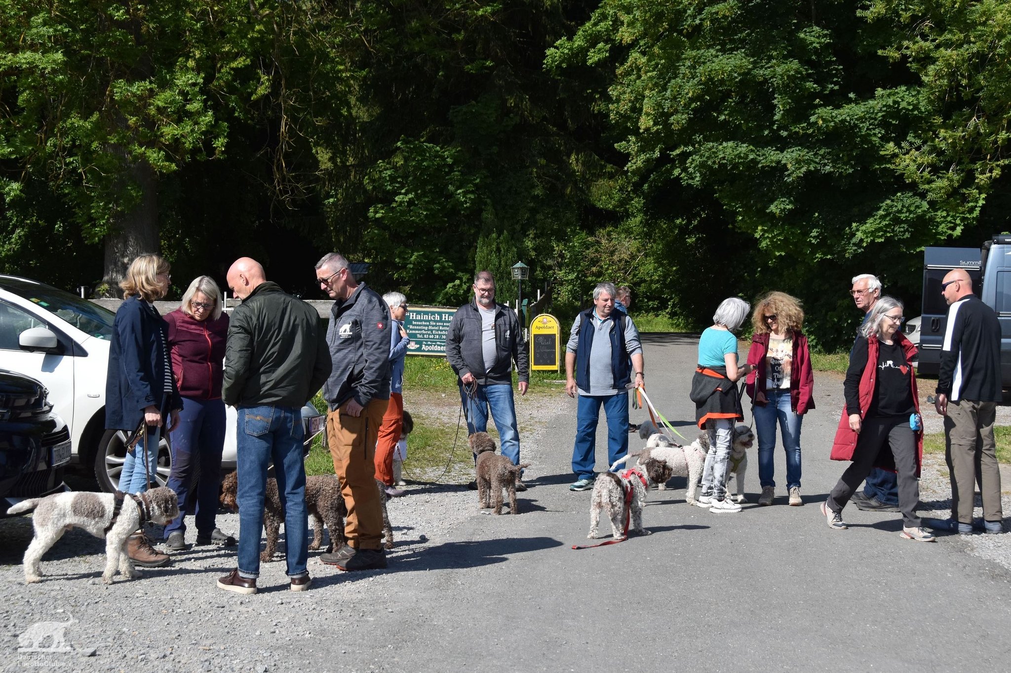 Zur Frühjahrswanderung trafen sich 26 Lagotti mit ihren Herrchen und Frauchen, um ein tolles Wochenende miteinander zu verbringen. Auch waren Gäste dabei, welche unsere Rasse kennen lernen wollten. Ein Teil kam schon am Freitag an, Auto ausräumen, Zimmer in einem hundefreundlichen Hotel beziehen und ab zu einem gemeinsamen kurzen Spaziergang. Es war so schön viele bekannte Gesichter und Lagotti und auch neue Gesichter und Lagotti zu treffen. Schon den ersten Abend haben wir zusammen ausklingen lassen.