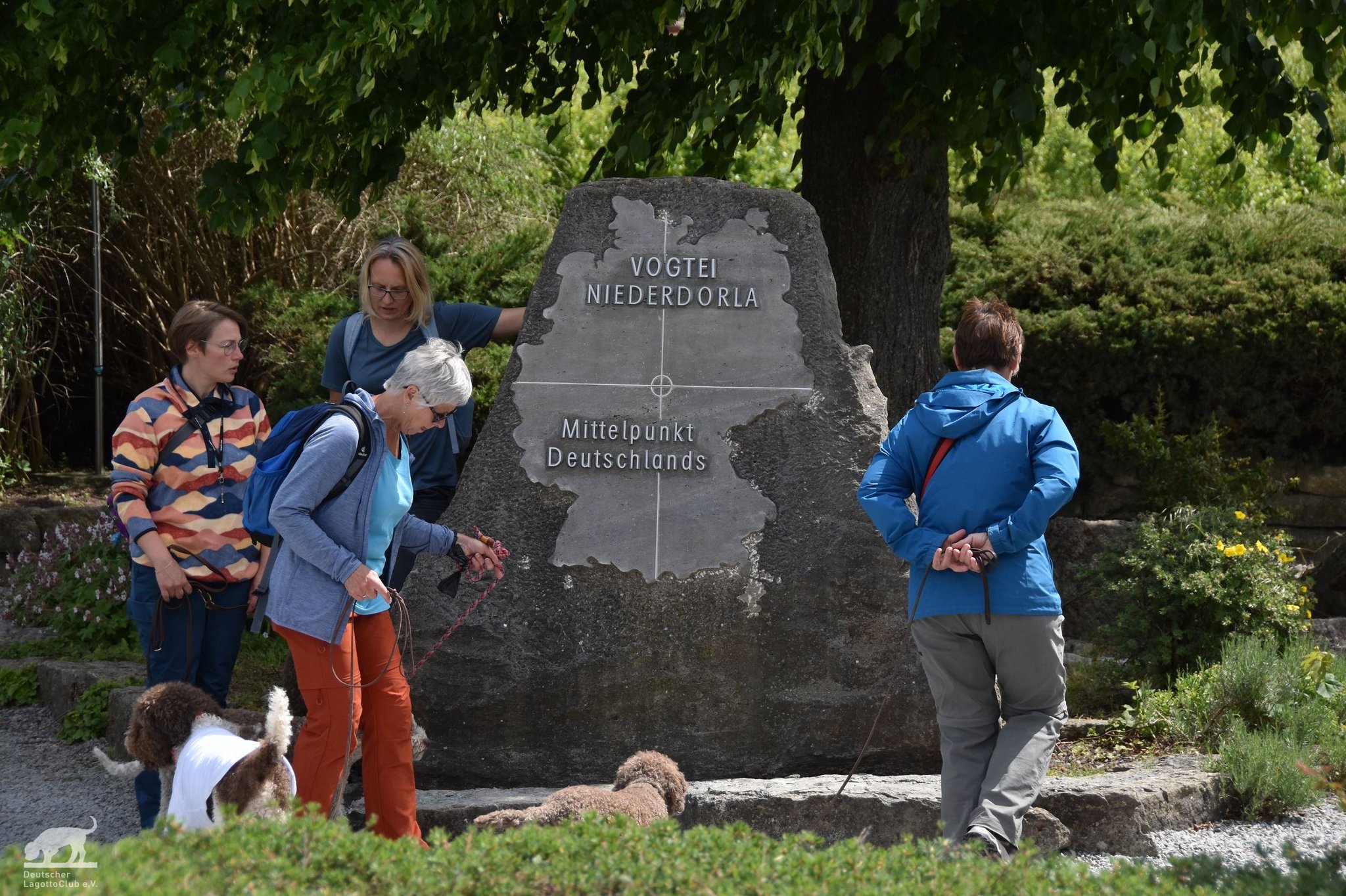 Am Samstag, nach einem gemeinsamen Frühstück und dem Ankommen weiterer Besucher fuhren wir zusammen zur Talsperre Seebach und starteten hier mit unserer Wanderung. Aber erst einmal hatten die Fellmonster die Möglichkeit sich ordentlich in der Talsperre zu wässern und los ging es bei schönstem Wanderwetter Richtung „Opfermoor“. Am Mittelpunkt Deutschlands machten wir Rast mit selbstgebackenen Kuchen, Kaffee, verschiedenen Getränken und den ein oder anderen kleinen Schnaps.
