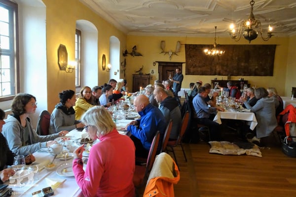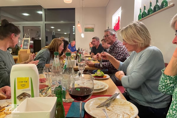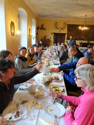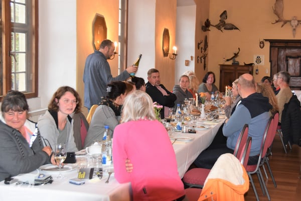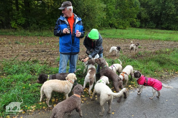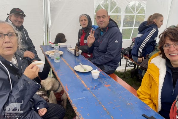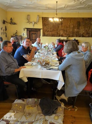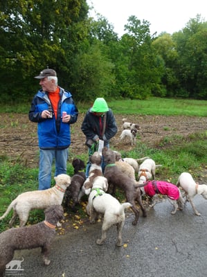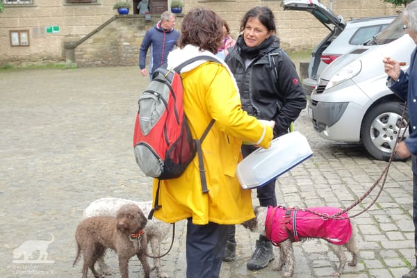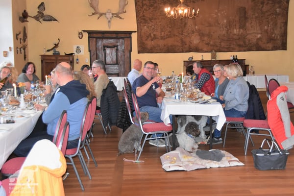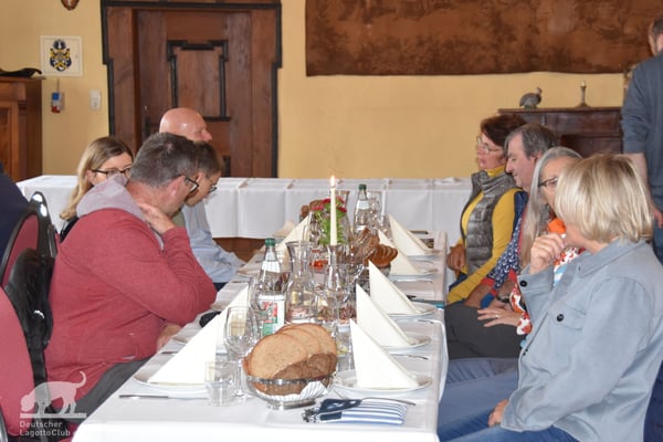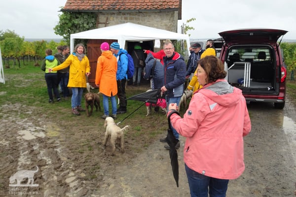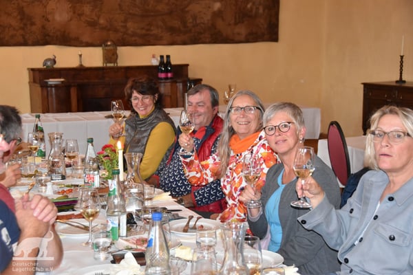 Schon am 01.10.2022 trafen trotz des Regenwetters die ersten Lagotti zusammen mit ihren Leinenhaltern in Zeilitzheim ein. Einige von ihnen begannen das Wochenende mit einem Spaziergang über den Quittenweg bei Astheim und mit einem schnellen Prosecco... wieder zurück checkten sie im Schloss ein und trafen sich zum gemeinsamen Essen mit weiteren angekommenen Lagotti im Weinhof Herbert, wo alle einen gemeinsamen Abend mit gutem Essen und fränkischen Weinen verbrachten.