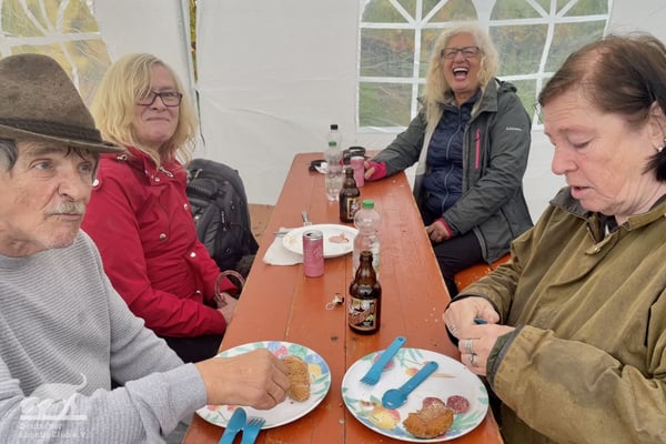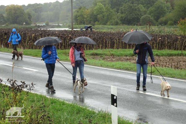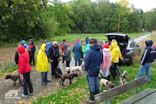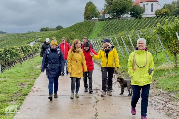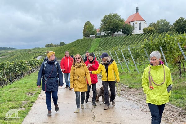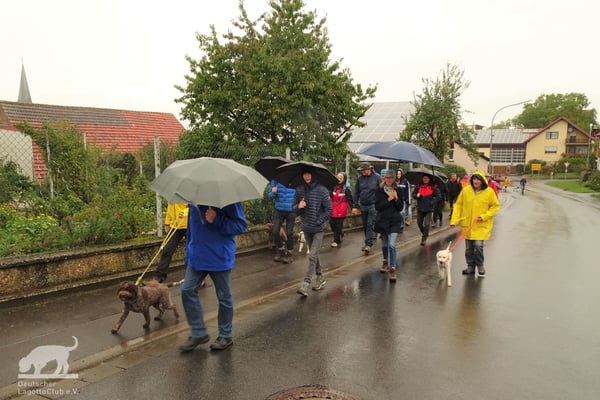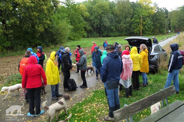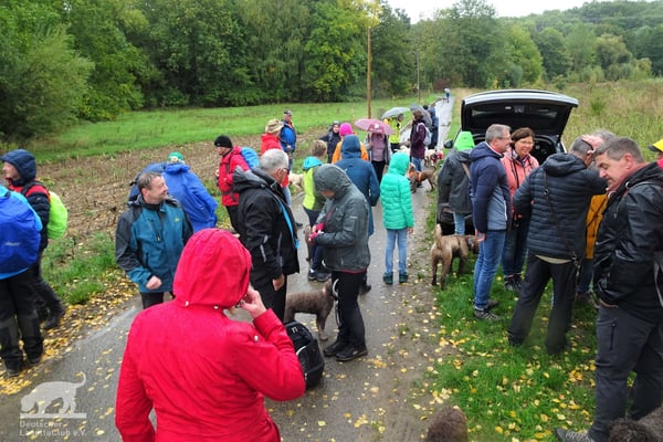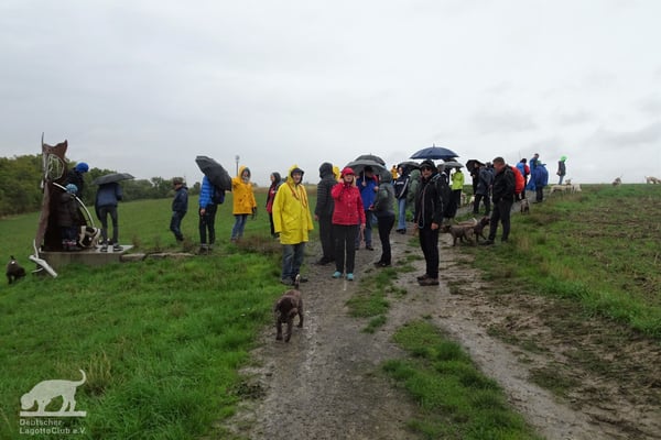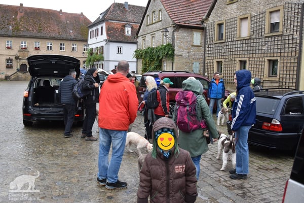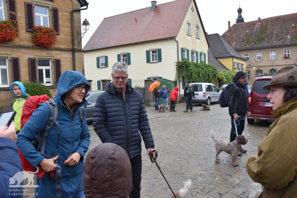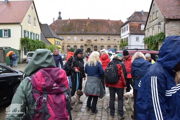 Am 02.10.2022 trafen wir uns gegen 11:00 Uhr zur Weinbergswanderung des DLC e.V. am Marktplatz in Zeilitzheim. Leider war uns der Wettergott wie am Vortag wieder nicht gut gesinnt und wir hatten den ganzen Tag Dauerregen, aber selbst das konnte uns nicht davon abhalten, dass sich eine große Wandergruppe mit insgesamt 31 Lockenköpfen in Bewegung setzte.
