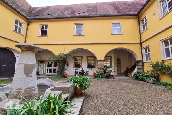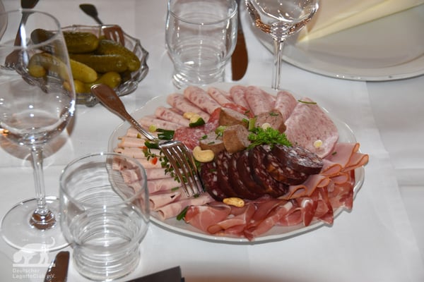 Am frühen Abend gab es noch eine 6-er Weinprobe "Wein von 3" mit fränkischer Vesper im Schloss Zeilitzheim. Jeder einelne Wein, mit Erläuterungen vom Anbau, Ernte bis hin zum Genießen, wurde von Schlossherren Alexander von Halem, einer der drei Weinmacher von "Wein von 3" vorgestellt.