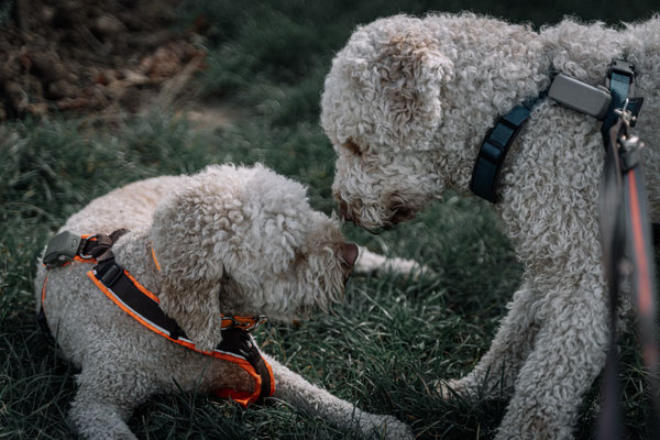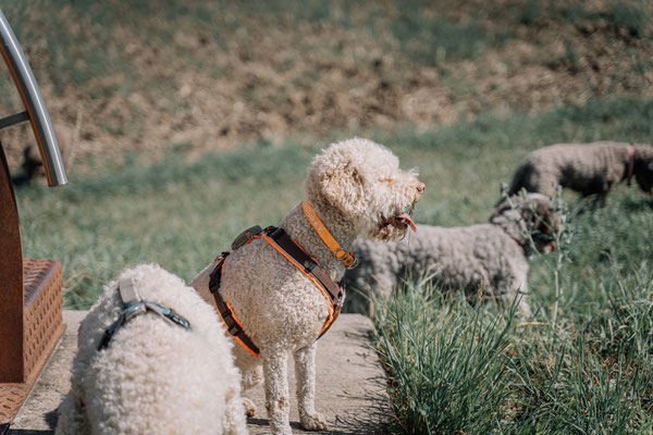 Da das Wetter wie bestellt war, konnten wir lange das Essen und die Aussicht genießen. Auf dem Rückweg durften die Fellmonster nochmal in den Seen schwimmen und sich austoben. Das war wieder ein Spaß und warm war es auch noch, so kamen wir fast trocken wieder auf dem Marktplatz an.