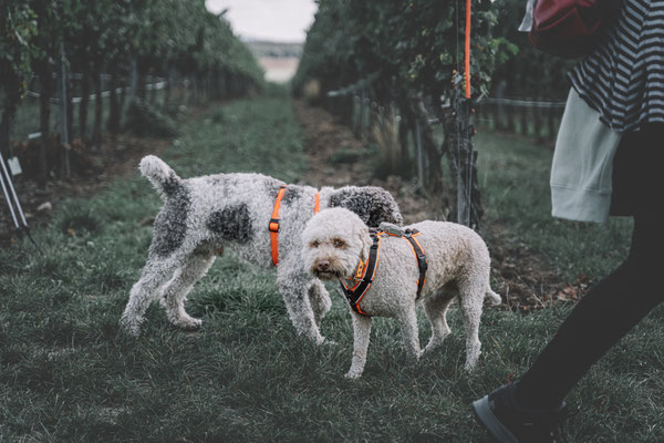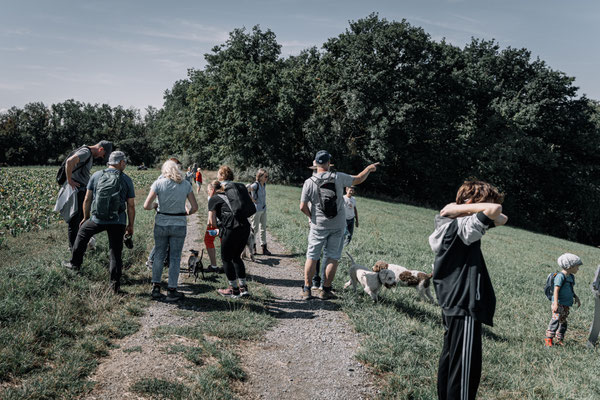 Über die Felder, vorbei an dem Aussichtspunkt „Eule“ wanderten wir an den Seen im Volkachgrund entlang. Schon an den Seen hatten unsere Fellmonster die Möglichkeit sich abzukühlen, was bei dem schönen Wetter angenommen wurde.