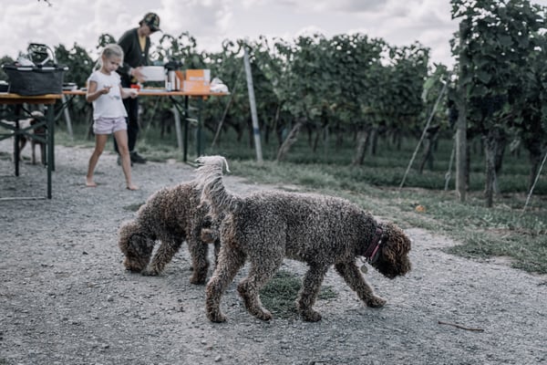 Am 06.09.2025 trafen wir uns gegen 12:00 Uhr zur Weinbergswanderung des DLC e.V. am Marktplatz in Zeilitzheim. Das Wetter war ein Traum und so setzte sich unsere Wandergruppe mit insgesamt 11 Lockenköpfen und einem Hund nebst Leinenhaltern in Bewegung.