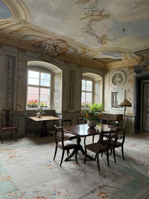 Am frühen Abend ging es zur geplanten fränkischen Vesper im Schloss Zeilitzheim. Hier gab es wieder ein kaltes Buffet mit bereitgestellten Getränken und Weinen von „Wein von 3“. Ein perfekter Abschluss unserer Wanderung.